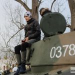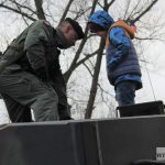 – Syn nie dałby mi spokoju, gdybyśmy tu nie przyszli. Jemu nie przeszkadza deszcz – śmieje się pan Stanisław, podczas gdy jego syn Dawid ogląda od środka jedną z wojskowych maszyn.