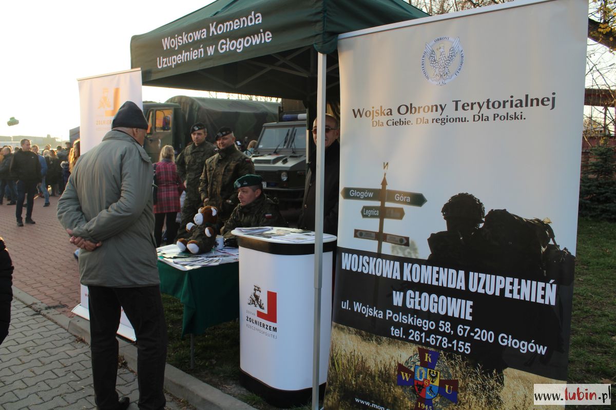 Lubinianie mogli dziś także pooglądać lub kupić kurtki wojskowe, czapki, berety i lornetki. Było w czym wybierać. Swoje stoisko rozstawiło także między innymi Stowarzyszenie Proobronne Tarcza. Nieco dalej rozlokowali się przedstawiciele Wojskowej Komendy Uzupełnień z Głogowa. Można więc było się dowiedzieć wszystkiego o tym, jak zostać żołnierzem oraz o Wojskach Obronny Terytorialnej.