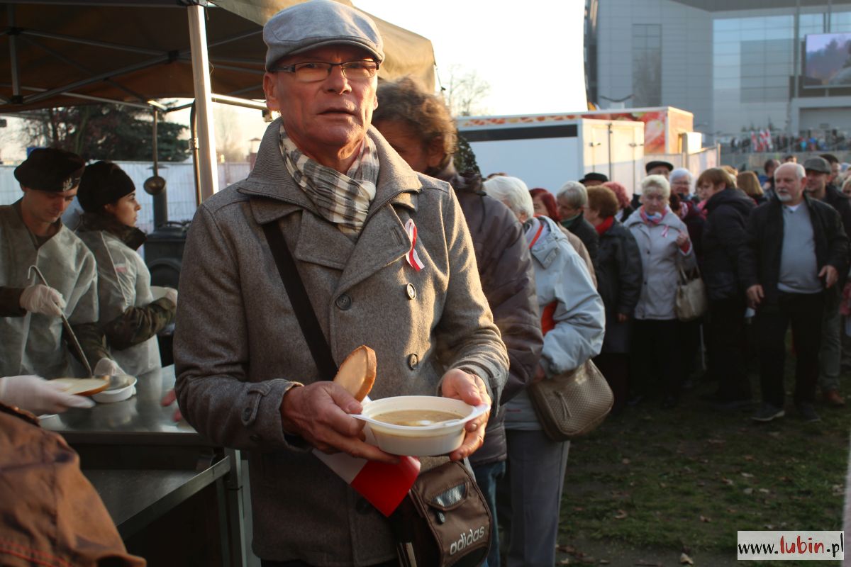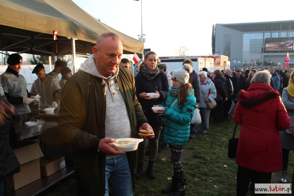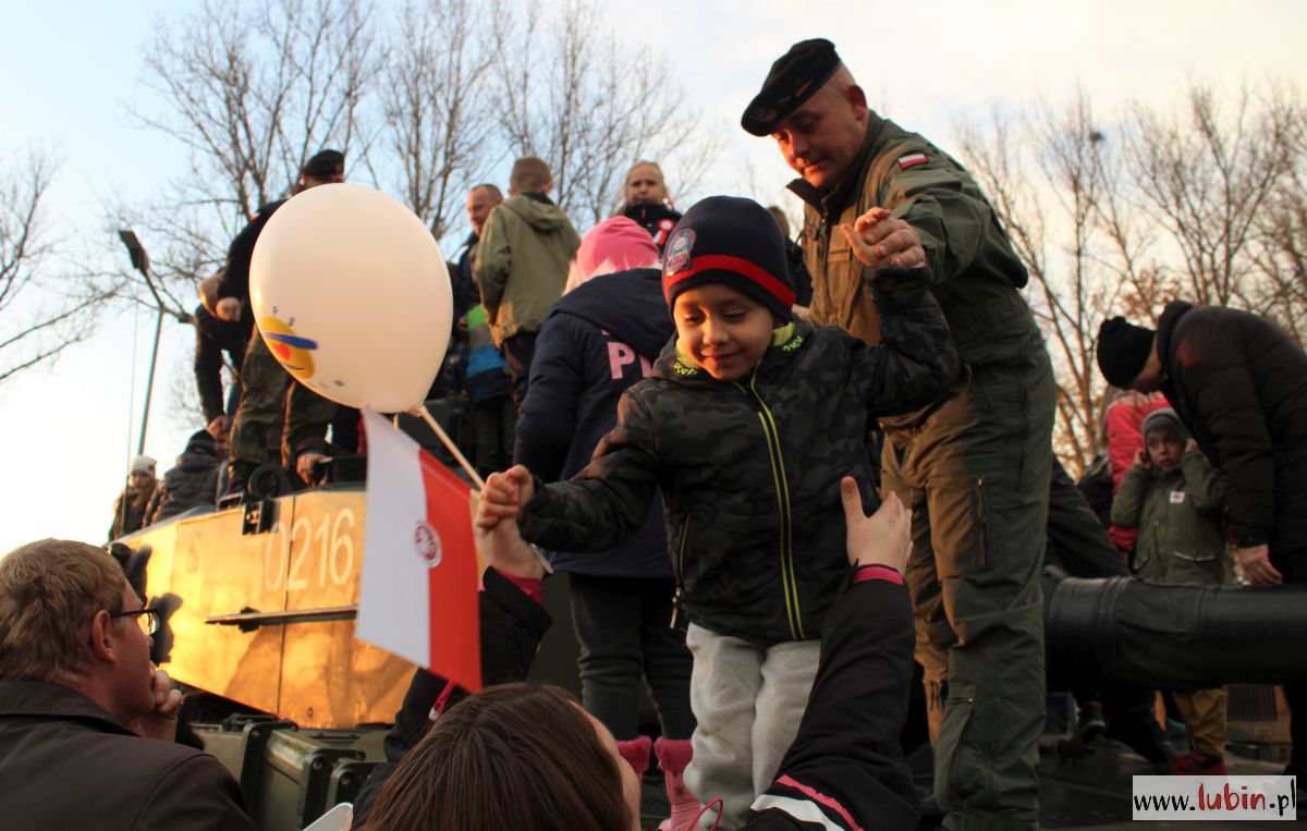 Ta impreza to już tradycja w Lubinie. 11 listopada świętujemy wraz z żołnierzami z Czarnej Dywizji, czyli 11. Lubuskiej Dywizji Kawalerii Pancernej po raz dziesiąty. Jak co roku na piknik przyszły całe rodziny. Wiele osób z biało-czerwonymi balonikami, flagami lub kotylionami przypiętymi do kurtek.