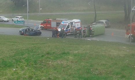 Do zdarzenia doszło dziś po południu w okolicach stadionu. Policja otrzymała zgłoszenie, że auto spadło z wiaduktu. – Na szczęście okazało się, że to kolizja drogowa – informuje Jan Pociecha, oficer prasowy lubińskiej komendy. – Jak się okazało, kobieta jadąca volkswagenem golfem nieprawidłowo zjechała z wiaduktu i zderzyła się z nadjeżdżającym żukiem – dodaje.
