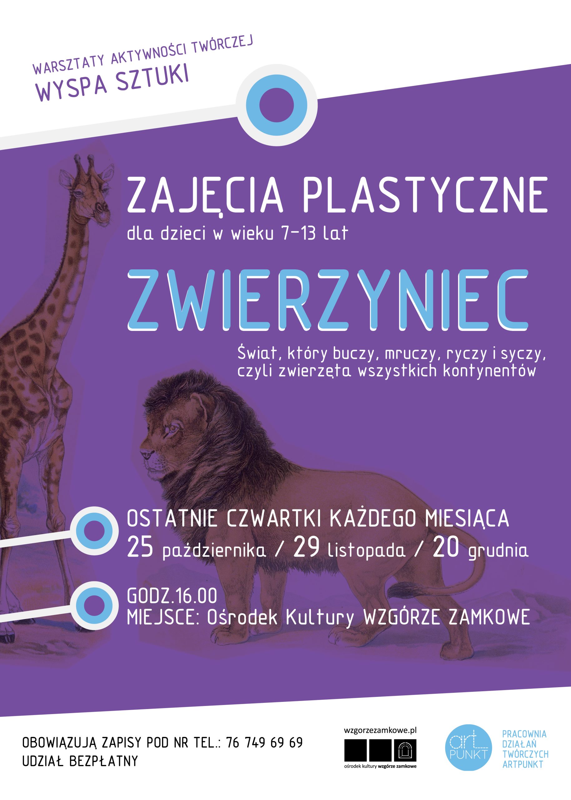 Zajęcia edukacji artystycznej odbywać się będą w Ośrodku Kultury Wzgórze Zamkowe w ostatnie czwartki miesiąca o godz. 16, według harmonogramu spotkań: 25 października, 29 listopada, 20 grudnia.
