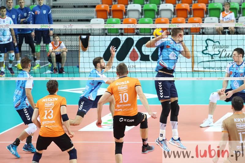 Na początku pierwszego seta prym na parkiecie bezapelacyjnie wiódł rosły środkowy Piotr Hain. To ten zawodnik brylował pod siatką gospodarzy skutecznie blokując ataki rywali. Na skrzydłach we znaki kielczanom dał się Robert Taht, a na zagrywce Łukasz Kaczmarek. Pierwszego seta miedziowi wygrali 25:23. Osłabione morale ekipy Wojciecha Serafina jeszcze bardziej przyczyniły się do zdecydowanego zwycięstwa Cuprum w drugim secie. Ekipa gospodarzy rozbiła przeciwnika 25:12. W trzecim secie na uwagę zasługuje środkowy Dawid Gunia, który prezentował skuteczną zagrywkę, po której zdobył asa serwisowego. Cuprum przy wspaniałym dopingu kibiców, wygrało 25:21 i cały mecz 3:0. MVP meczu okrzyknięto przyjmującego miejscowych, Robeta Tahta.