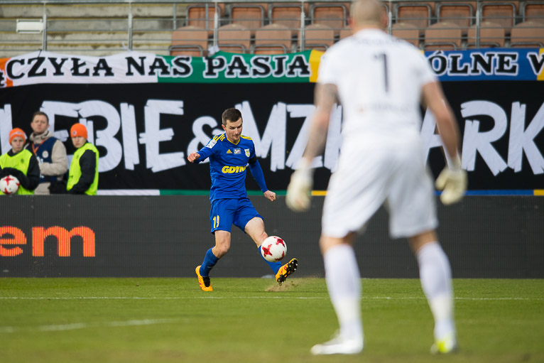 Zagłębie Lubin i Arka Gdynia zamykały 22. kolejkę Lotto Ekstraklasy. Ekipa Piotra Stokowca zanotowała swoje pierwsze punkty w rundzie wiosennej wygrywając 1:0.