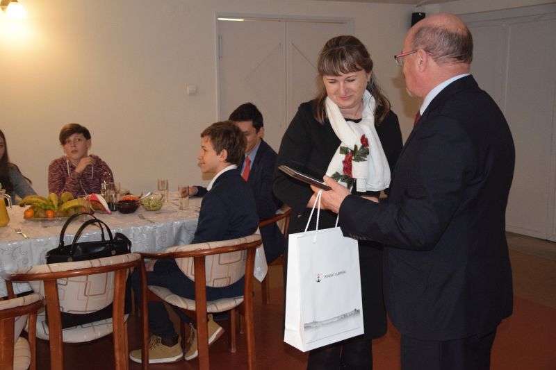 W ramach podziękowania starosta zaprosił młodzież na drobny poczęstunek i wręczył im listy gratulacyjne oraz upominki.